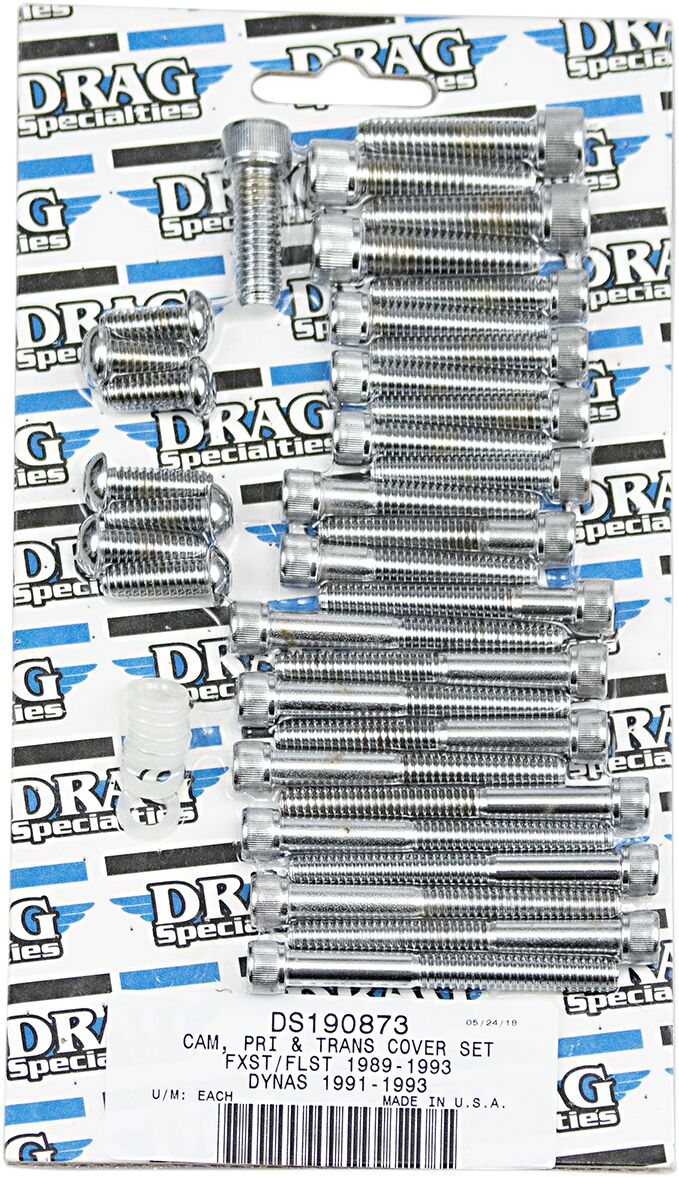 DS190873 - DRAG SPECIALTIES CHROME SOCKET-HEAD PRIMARY/CAM COVER BOLT KIT KNURLED