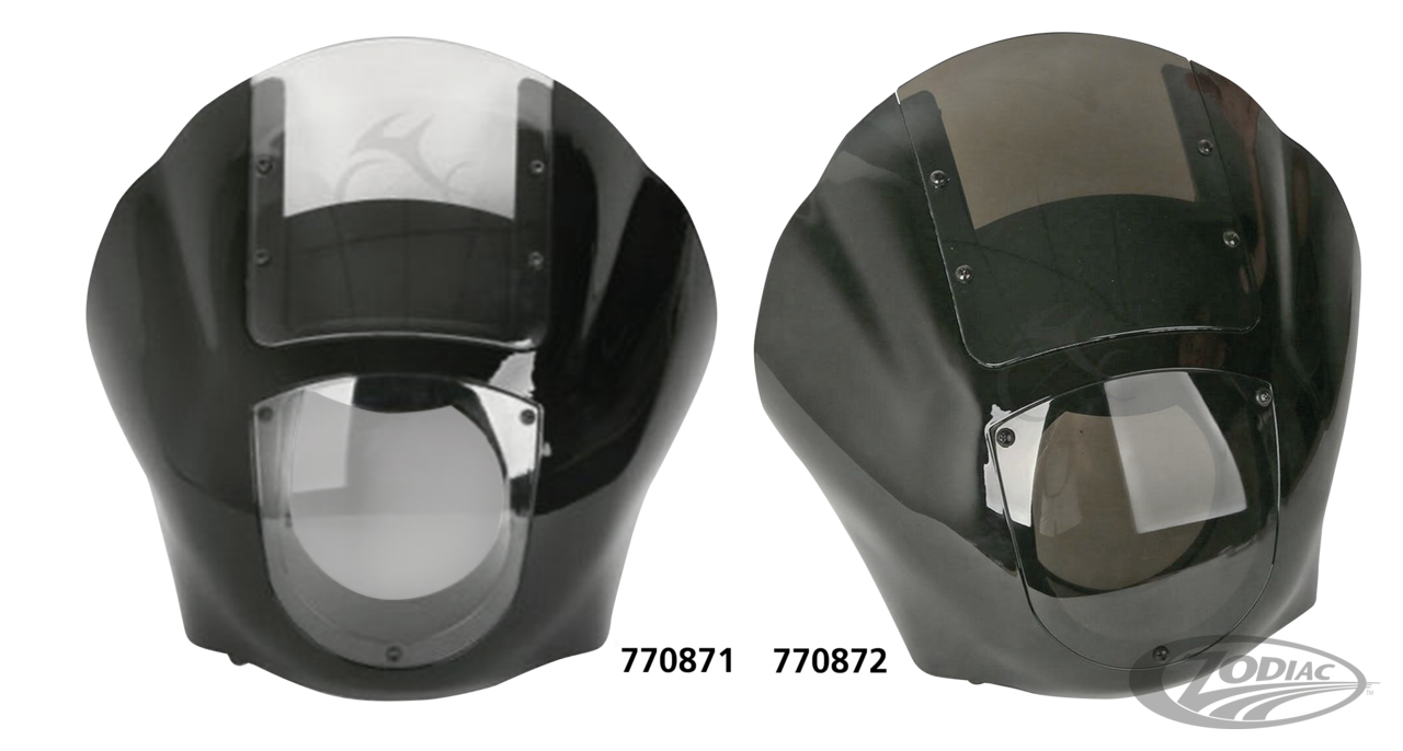Glänzend schwarze Viertelverkleidung mit klarer Scheibe und klarer Scheinwerferscheibe