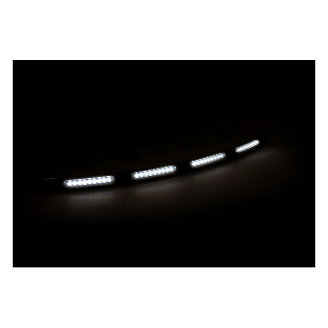Custom Dynamics TruFLEX® Batwing turn signal LED trim tubeStainless steel black trim with flush mounted amber and white LEDs behind a smoke lens. Plug & Play. Includes all required mounting hardware.