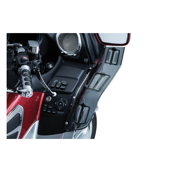 Kuryakyn's 'Dragon Wings' for Gold Wings! Guide airflow around the fairing for reduced turbulence during cool weather or open them for a refreshing breeze on those scorching hot days. Features include simple hand-operated 4 point adjustablity and a shatter resistant polycarbonate construction.