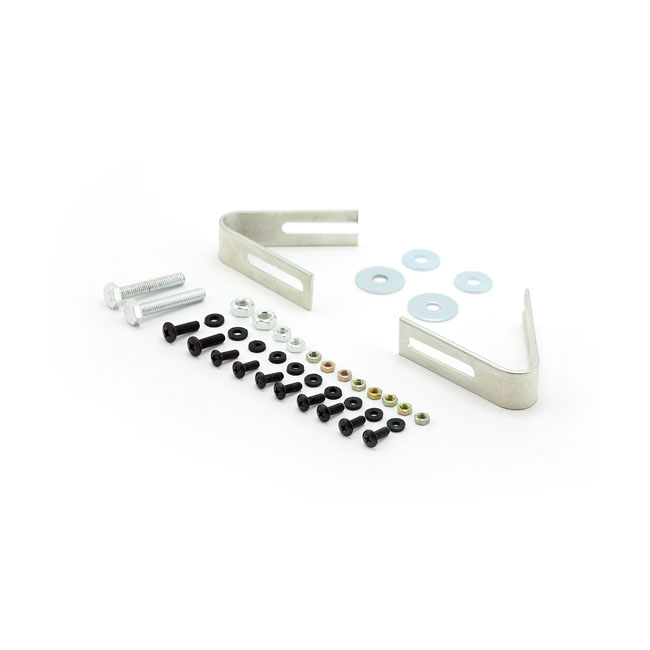 Gloss black. Mid-sized headlamp mounted fairing for bikes with a 7" round headlamp. Black ABS construction with a clear plexiglass (acrylic) windshield. Includes universal mounting brackets and hardware for installation to a side-mount headlamp.