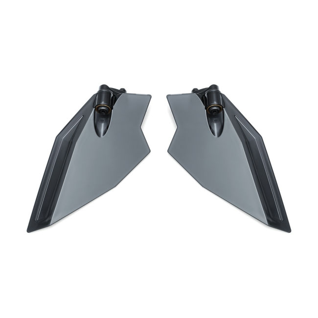 The perfect functional additon to the 586432 air deflectors; sold separately. These adjustable upper air deflectors open to redirect airflow into the cockpit for less turbulence and refreshing breeze. Adjust to two positions: Open and closed. Made from durable scratch- and shatter-resistant polycarbonate blades. - Made from durable scratch- and shatter-resistant polycarbonate blades. - Dark smoke tint adds style and matches Kuryakyn 586432 Air Deflectors for a clean; uniform look. - Adjust to two positions: open and closed. - Easy installation with simple hand tools.