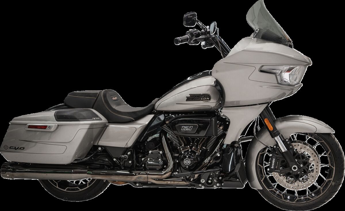 - Das patentierte Design mit seitlichen Hüften" leitet den Fahrtwind vom Fahrer ab und sorgt für mehr Abtrieb am Vorderrad, was die Stabilität gegenüber der Serien-Windschutzscheibe verbessert.